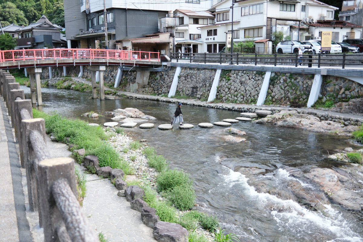 車で1時間ほど走っただろうか。着いてみて確信した。これはいい場所に来たぞと。景色は古い温泉街という感じではあるが、建物は新しいものが多かったりする。なんといっても川が流れている、この景観がとてもいい。